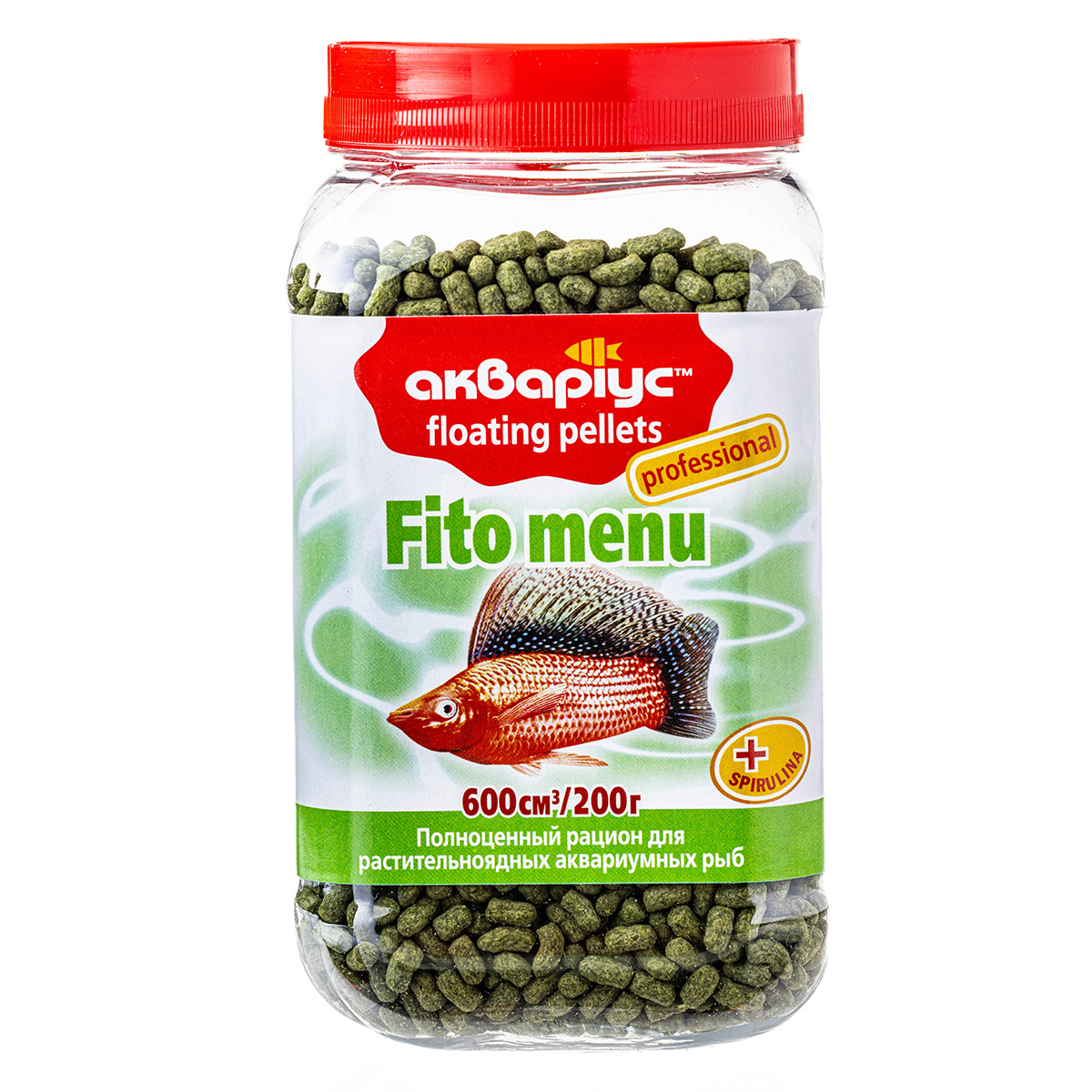 Професійний, науково обгрунтований раціон з великим вмістом протеїну рослинного походження та значним вмістом цінної водорості спіруліни задовольнить потреби тих рослинноїдних риб, які харчуються у верхніх шарах та з поверхні води. Не потребує доповнення іншими кормами.