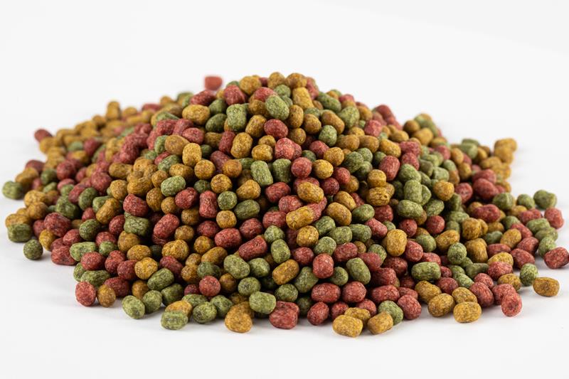 Корм придатний для годування золотих риб та декоративних карасів ставкового утримання.