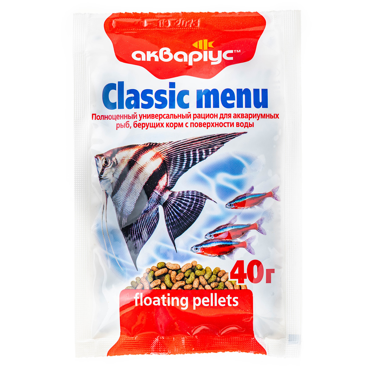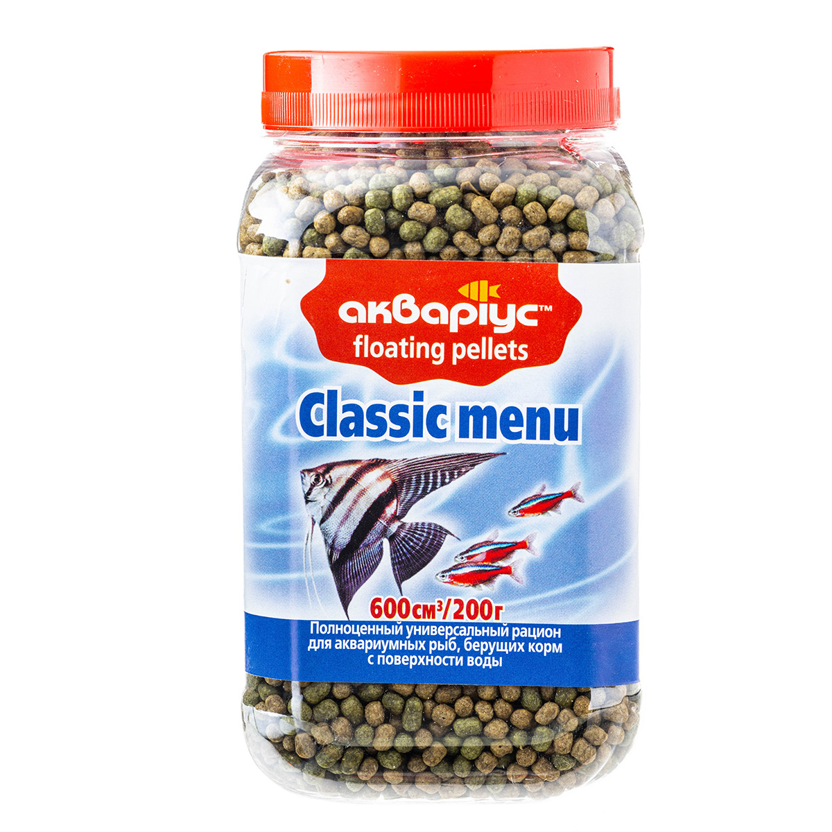 Класичне меню, плаваючі пелети. Універсальний збалансований раціон для щоденної годівлі більшості середніх та великих видів акваріумних риб, що беруть корм із поверхні води: золотих риб, цихлід, скалярій, гурамі та ін. Містить усі необхідні поживні речовини та вітаміни для здорової життєдіяльності. Не потребує доповнення іншими кормами.