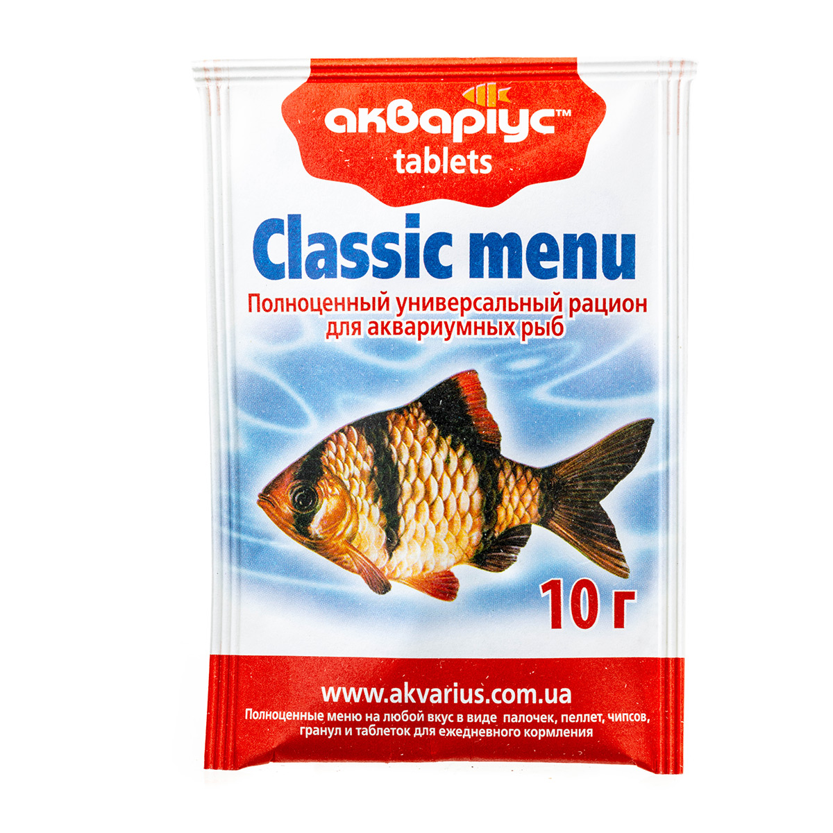Класичне меню, таблетки. Універсальний збалансований раціон для щоденного годування донних риб: анциструсів, лорикарий, лабєо, отоцинклюсів, малавійських цихлід. Для риб, що беруть корм у товщі води – барбусів, тернецій та ін. – таблетку можна приклеїти до внутрішньої стінки акваріума. Містить усі необхідні поживні речовини та вітаміни для здорової життєдіяльності. Не потребує доповнення іншими кормами.